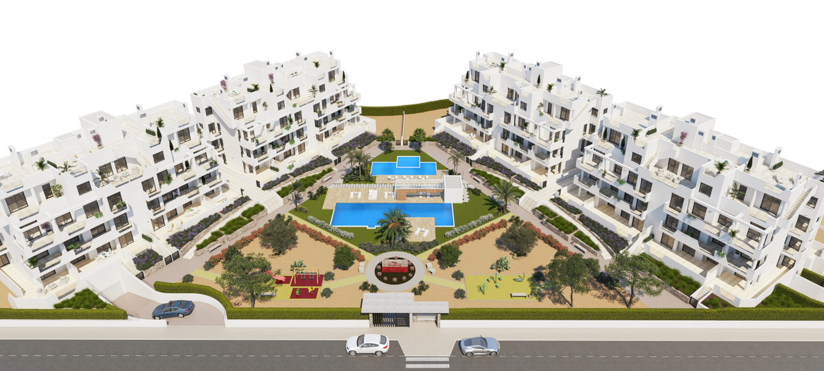 This development has 60 apartments distributed in 4 buildings with terraced area for ground, first and second floors, community swimming pool, heated swimming pool and solarium with Summer kitchen on the penthouses, to enjoy all hours of sunshine every day of the year.